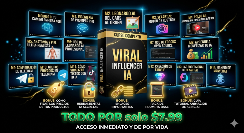 Apto para todos desde 0. Vamos desde lo más básico (crear tu primer prompt) hasta la monetización avanzada. No necesitas conocimientos previos de diseño o IA.